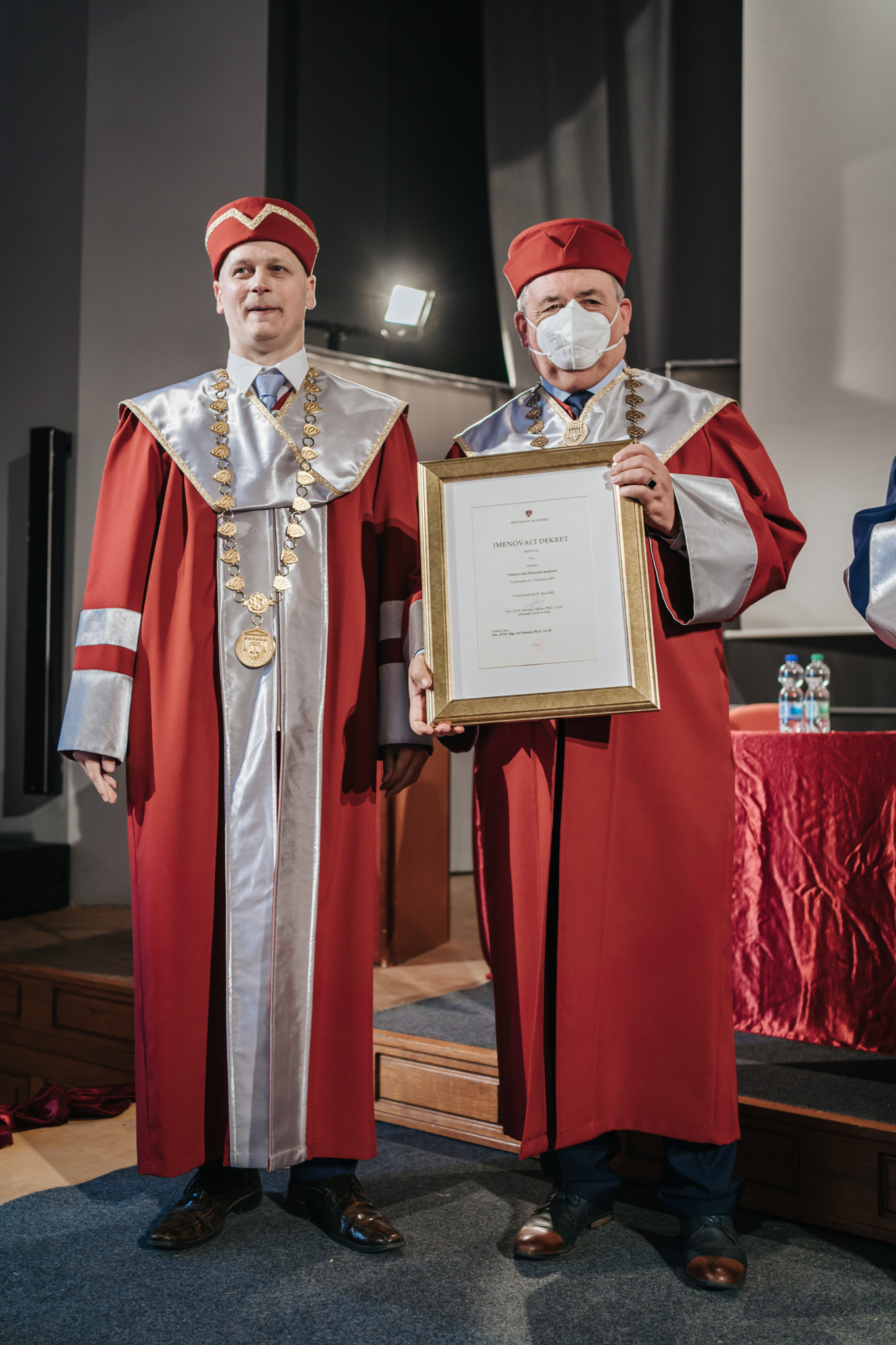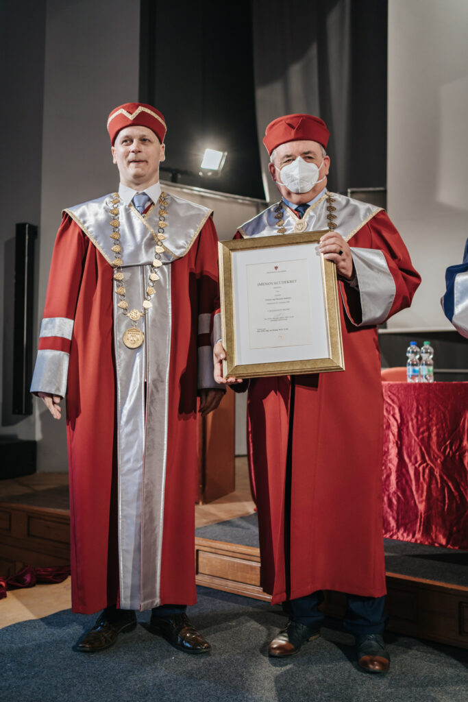 V rámci tohoto ceremoniálu došlo po inauguračním řízení k předání diplomu Doktora humanitních věd panu Dr. h. c. Doc. JUDr. Miroslavu Felcanovi, Ph.D., LL.M., který získal za svou dlouholetou vědeckou práci a přístup ke vzdělávání.